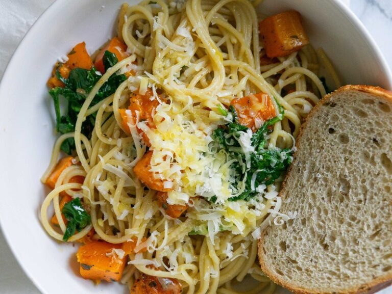 October 2024 Ingredients 8 ounces thick-cut bacon, diced into ½-inch pieces 1 large butternut squash, diced into ½-inch pieces 1 tablespoon olive oil 1 bunch kale, cut into 1-inch pieces 1 pound cavatappi or pasta of choice Freshly grated Pecorino…