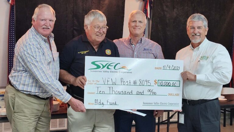 December 2023 Honoring Our Veterans Just before Veterans Day, Suwannee Valley Electric Cooperative (SVEC) honored area veterans with a check presentation to the Veterans of Foreign Wars Post No. 8095 in Jasper. Combined with a $5,000 matching grant from one of…
